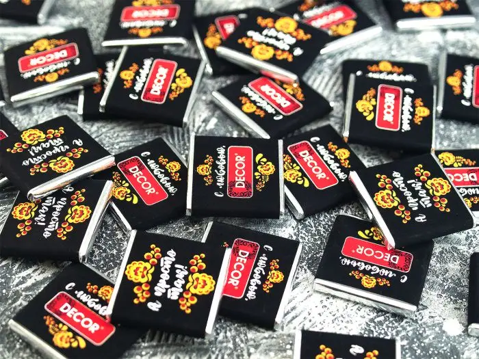 • Изготовление мини-шоколад с логотипом или фото